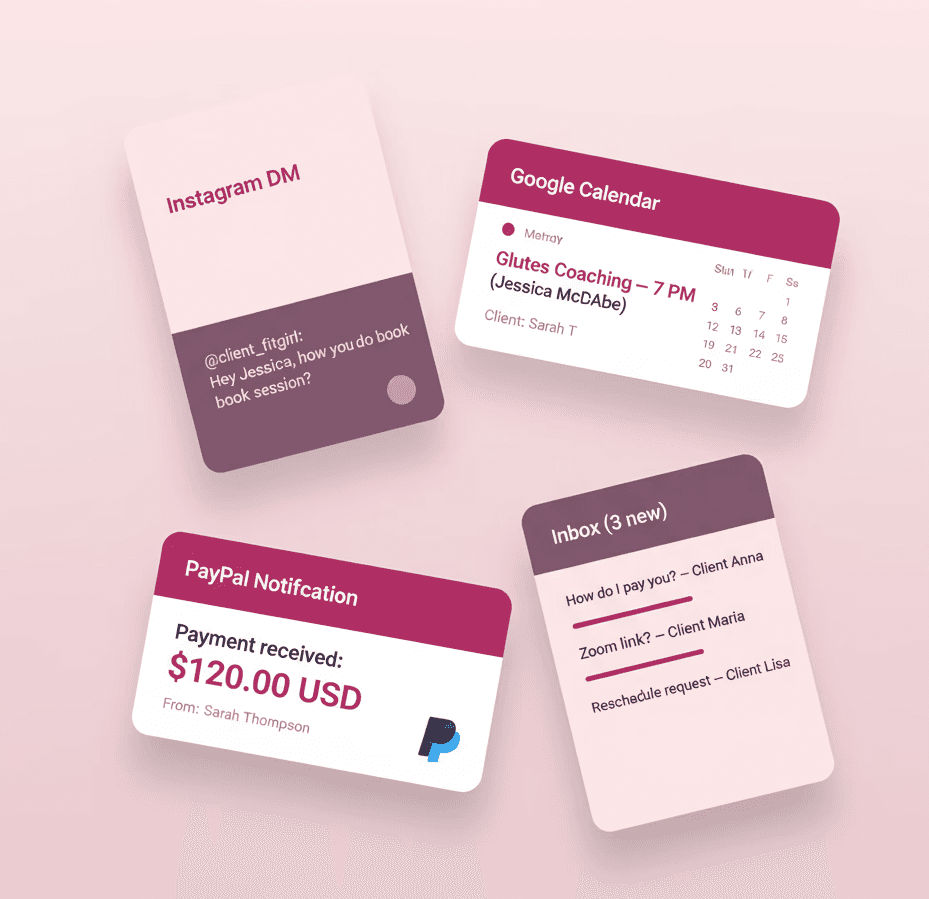 Right now, everything is fragmented: Instagram DMs, Solin, Calendly, PayPal. It works… but it feels messy. And messy doesn’t convert.